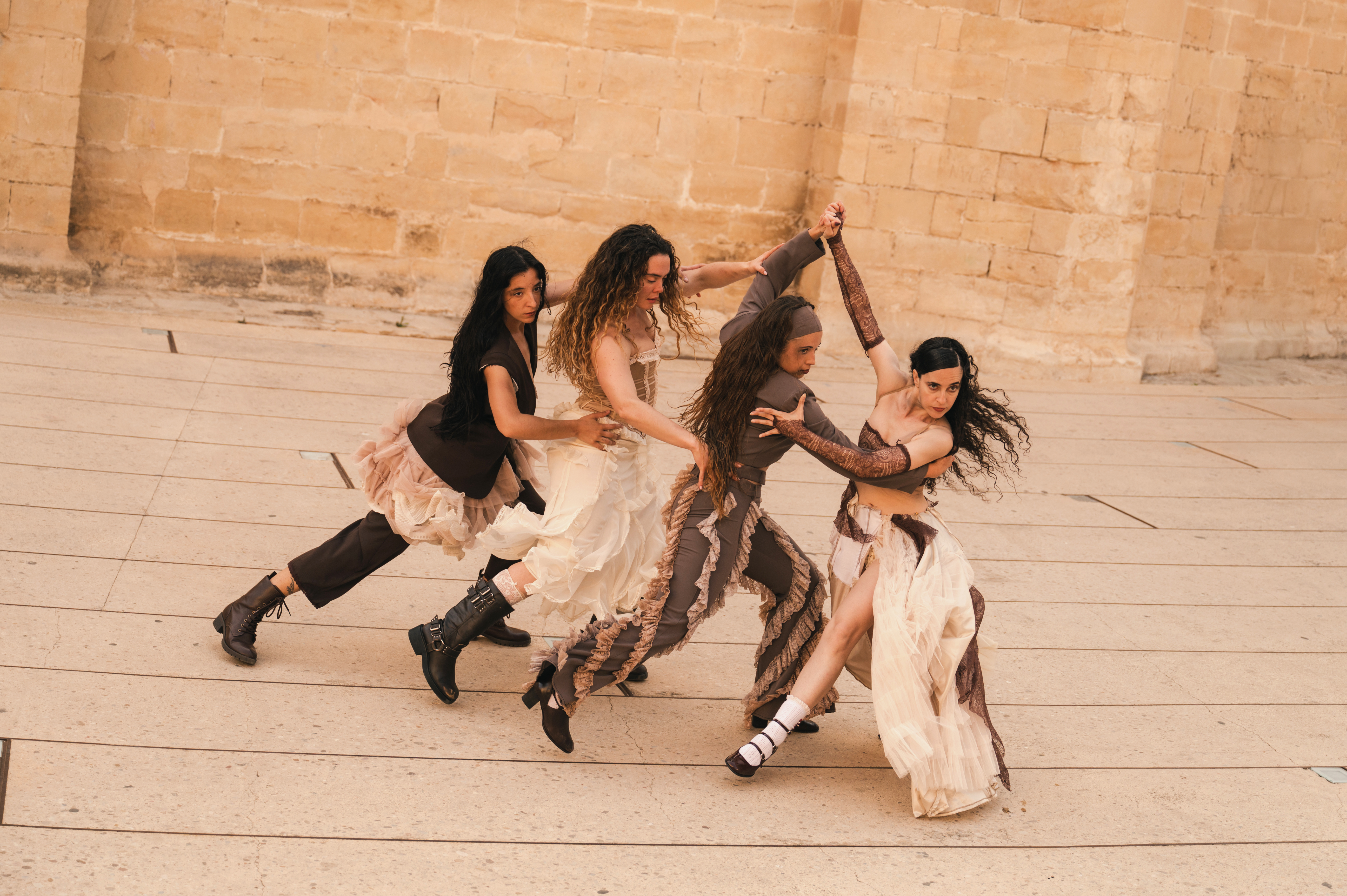 Les quatre ballarines de companyia La Dama posen cos a aquestes dones que transiten els intersticis entre el món de les vives i les mortes, com un exèrcit armat a ritme de pasdoble.