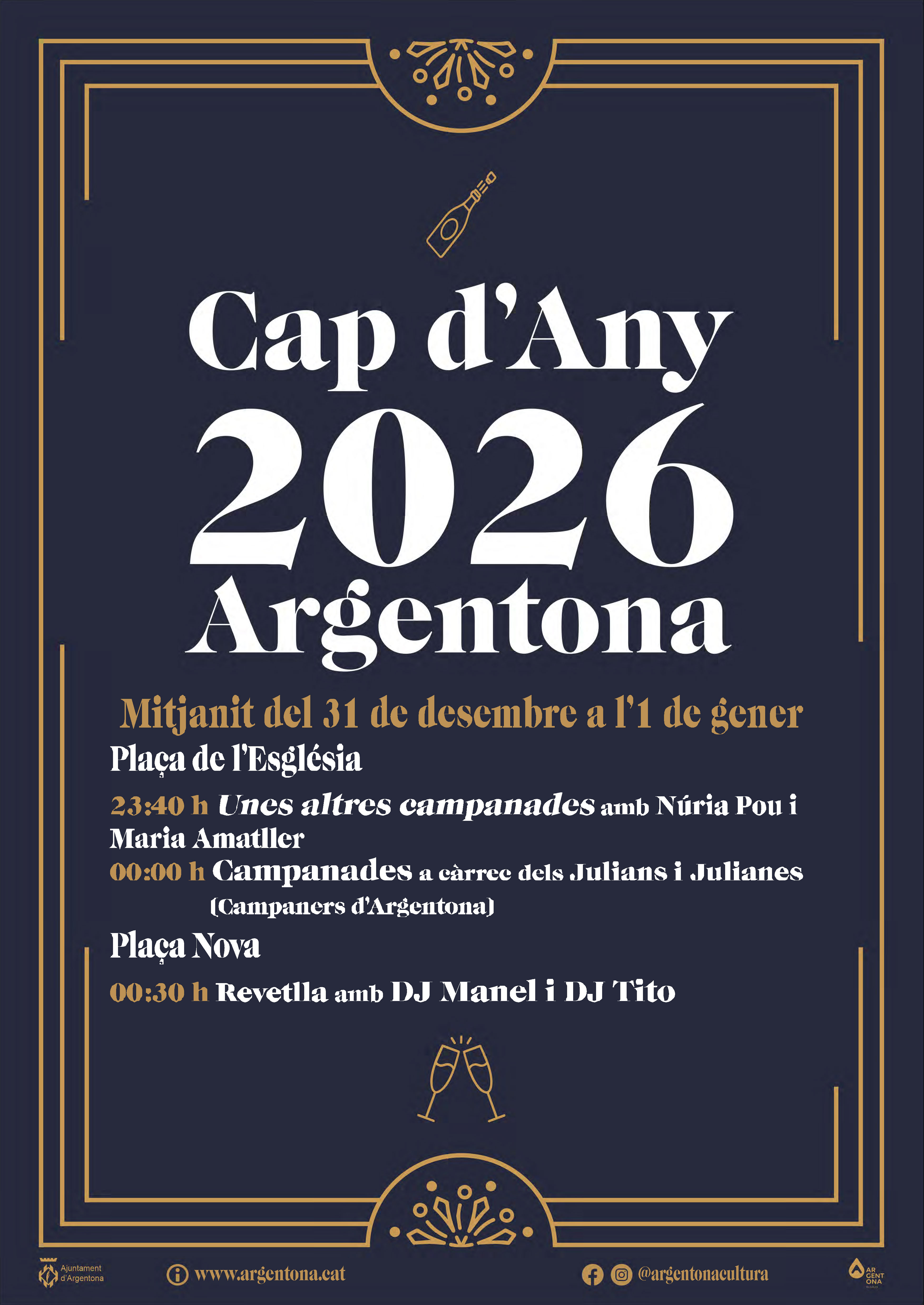 Les campanades les realitzaran els Julians i Julianes (col·lectiu de Campaners d'Argentona), seguides d'un petit castell de focs que donarà la benvinguda al 2026.